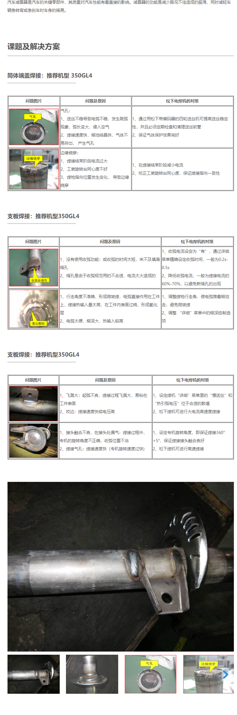 松下350GL4焊機減震器焊接工藝